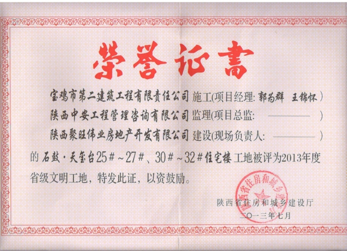 2013年省級(jí)文明工地(虢鎮(zhèn)名苑)
