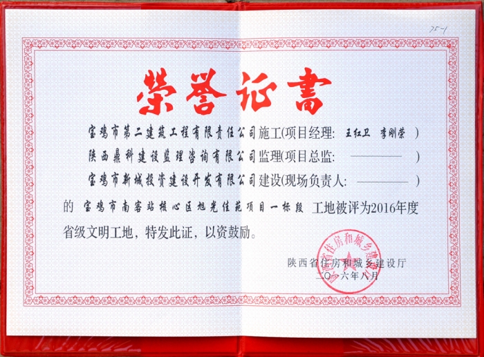 2017年度省級文明工地(寶雞文化藝術(shù)中心)